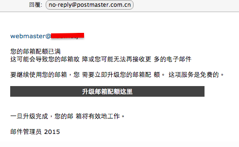 通知您信箱配額已滿,需要立刻升級,點選升級之後會輸入信箱帳號密碼,這樣您的信箱就被盜號了